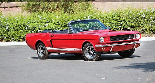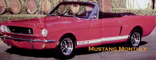 6S2377 as it appeared in 1991 ![]() Bob Steinberg owned this Magnum rim equipped red 66 original Shelby G.T.350. It was the only one, which received Magnum wheels. The first owner was reportedly Bob Shane from the Kingston Trio. Sold on July 7th, 1966 to Bob. After a small accident the car was probably sold to S&C Motors already in late 1966 and later to Hi-Performance Motors in El Segundo/CA. Ron McClure had it in 1978 with 40.000 miles on the speedometer in Pasadena/California. It was bought from Rick Nickle from Torrance/CA in primer &b ondo condition. 4000 dollars was the typical 66 convertible price back then, but Rick already paid much more as the seller knew what he had. Still it was stored for another 2 years outside, then 8 years in a wood factory. Rust went through the sheetmetal from the outside to the inside and the red colour turned into brown-orange joining with the sawing stuff. Bob Steinberg bought it in this condition although it was advertised 3 times and big wallet buyers popped up, still the seller having promised the car to Bob sealed a profitable deal - for Bob. Fairness counted more than big money. Drew Alcazar got the job to restore this famous convertible and Bobs wallet got thinner, but as a good investment for the future. The restoration took 18 months due to the heavy rust and a tree that had fallen on the car. The exhaust system was rebuild by Nash Muffler service. Information courtesy Mustang Monthly Aug.1991 Around 2009/2010 it was sent to WWMC and finishing touches done by Jason Aker in another restoration. Update 2012 6S2377 was featured again in a 2012 Mustang Monthly magazine. You can read about its actual status here