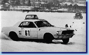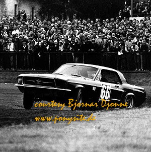 ![]() Bosse in his first race in Brunnjøen February 67. He leads, but looses one wheel. Car number 61. ![]() Bosse in front of a bunch of 911, one Chevy and two Mustangs behind. ![]() Bosse Ljungfeldt in an unknown race. Behind him the Swedish champion in 67, Bo Brastad in a Porsche 911. All pictures courtesy Bjørnar Djønne | The history of No.8 of the 1967 Shelby HardtopsBosse (Bo) Ljungfeldt was succesful in most of the events he entered between February and October of 1967. After that season the car was loaned to FoMoCo Denmark, where driver Tom Belso raced it. Tom rolled the car finally in a race in Norway.FoMoCo Norway bought the car, repaired it and raced it through the 7oies with Trond Shea until it was converted to street use. ![]() Trond Shea and the Shelby at the Bjerkefeld horsetrack race. Several owners followed until it got into my hands. I am currently restoring it to the original Shelby Racing specifications ... since 1997. ![]() Trond Shea with the then dark Shelby No. 66. Check out his race suit. Best regards Bjørnar Djønne |