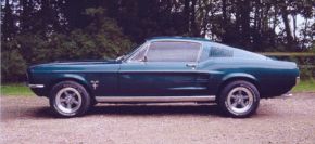 "It's a 1967 390 GT. fully restored, costed me £23,000. All done here in UK. Sprayed dark met green. New body panels, floors and interior. Fully rebuilt 390 FE GT engine. Windage tray, high lift cam, 4 barrell Holley, aluminium prop shaft. Fully rebuilt 4 speed top loader. I always loved the film Bullitt and always wanted the car. The stripes areg one meanwhile and a new set of Torque Thrusts have been mounted". This is Shauns second car, that he tries to get close to the original. He sold his first one to Scotsman Gary H..