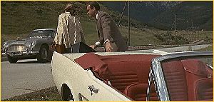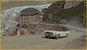 me, they were approached by Walter Hayes, the lengendary Public Affairs boss of Ford Europe. The film producers had asked Allan for some help on the stunt scenes and requested a Mustang convertible for a female actress as well. As Allan recalls, "he had a convertible around" and it was easy to locate it for the filming. Lincoln cars actually had handled the Ford Performance cars imports to UK early in the 60ies and John Grant said that most cars delivered to Alan Mann in 1964 came via Lincoln Cars around the corner. It must have been still tough to get a 64 1/2 convertible in May, but nobody would turn down a request for a Bond car. And if Walter Hayes and George Merwin with a link to Jaques Passino was in the background... it should have been rather easy. Actually the US licence plate is known meanwhile from Goldfinger production files. The white 64 1/2 convertible with a white soft top under the read cover was the first appearance of a Mustang in Bond movies. Blueray disc research shows, it was rather white. Alan Mann was in Monte Carlo at the time of the filming and could plan ahead for the support indeed. Some suspension modifications were done to make it race-ready for the small curves and steep tiny roads at the Furka pass. Alan Mann did not remember the VIN nor what happened to the car later. He thought it might have been scrapped, but we all know, movie cars apparently pop up here and there. In the end Alan Mann confirmed that he will be able to verify any car by specific changes they made, so attempts to produce fakes will not really be successful. John Grant from Alan Mann Racing remembered the car very clearly. He told us a decade ago in his interview a nice anecdote about the actual filming at the Furka pass. Andrew Cowan drove the car in some scenes and had to wear a wig, which was quite funny to see for his race team mates, as he was quite tall. They all had a lot of fun being there. |
