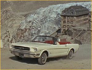 The Timing was bad for Ford To have a new car in a Bond movie has been always a promotion that each car manufacturer lusted for. When the 3rd. Bond movie Goldfinger was scheduled, Ford had a problem. The first scenes were already filmed from 20.-24th. of January 1964 in Miami at the hotel pool, where Gert Froebe (Goldfinger) and Shirley Eaton (as Jill Masterson) played false. Still at this time doubles were used, while the close-up shots of the actors were done later in the studio. Fort Knox was rebuilt in the Pinewood studios in England in March 1964 - without any detailed plans, just according to Ken Adams visionary film set designs - which was very close to the real thing - as officials later confirmed. Flying over Fort Knox several times with running film cameras and no approval would be definitely a no-go today, but was initiated by Director Guy Hamilton back then. These scenes were even used in the final movie. The 3 million dollar budget apparently allowed the producers to acquire some interesting cars. The most famous movie car in the world (as of today) is certainly the special DB5. It could have been the golden Mustang Fastback as described on this website, but Ford was late. Spending big money on the Bentley of Goldfinger plus a crashed new black Lincoln - a scandal at that time - took its toll on the car park budget. A Ranchero was in the movie as well as a Ford Country Squire Station Wagon and a Thunderbird convertible driven by CIA rep Felix Leiter. A side note - if looking close, you can see that the engine in the crashed Lincoln was missing, so they saved some money, which was probably left for hiring the most beautiful car in this movie for the female Bond counterpart in Europe - Tilly Mastersen - played by english star model Tania Mallet. Ken Adams, Goldfingers production designer was known for his interest in sports cars, probably he was influental that a new Mustang had just to be in there despite that Ford could not manage to get the special Mustang built in time. Of course he was the man, who had the idea for the special equipment in the Aston Martin DB5. So we can be pretty sure that it was him who requested a Mustang to be used. An advertisement from Lincoln Cars in September of 1964 with a white convertible and Tania Mallet may be proof that they delivered the car and used this connection for promotion later on. Back to the schedule the Golf Course scenes were filmed at Stoge Poges in May 1964 as well as the famous chase scene in the night at Black Park, both locations being close to the Pinewood Studios in England. The white Mustang got already pictured at the golf course with Tania, so obviously it was already then in the UK. Aside from the Miami shots and some scenes being filmed in Washington, only the chase scene with the Mustang was filmed at the Furka pass in Switzerland around early July 1964. The chosen DB5 did not make it to Switzerland, so the gadget equipped DB5 had to be flewn in. |