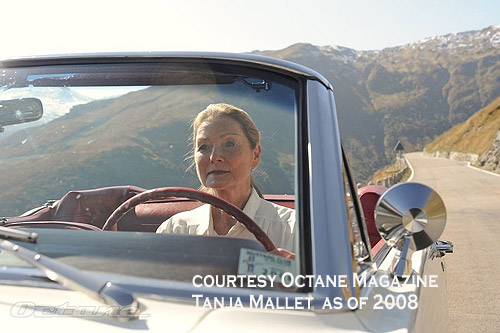 Most of us today are convinced - and Ian Fleming Organisation confirmed - it was a white Mustang, other pictures with Tania from the set show the white convertible top. Also note the whitish sunvisors, probably colored to light up the face for close-up shots. John Grant (ex-Allan Mann mechanic) told me it featured a regular 289 engine, not a HiPo. Note the big UK licence plate MLO973B indicating that this car was brought over from England, but in fact it is a fake movie plate as we found out with help from a person who had insight into the old files back then. The US licence is known as of now. ![]() In 2008 Tania Mallet joined a special photo event with Peter Lanz Mustang convertible being used as a replica at the Furka pass. The Ponysite was partially involved in making the contact and Peter as well as Tania enjoyed this day very much. ![]() In March 2019 Tania Mallet died unfortunately at the age of 77. Rest in peace. We feel sorry for her family and friends. An orbituary is currently written by Richard Truesdell and published in April 2019 in Mustang Monthly. |