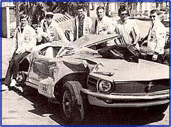 What followed after the Mustangs? | Later until 72 we used Pintos and Mavericks. The Mavericks were really super. I remember them very well. There was one moment that made me really proud. We were the only ones allowed to stage our cars - with approval from the authorities - at the IWO JIMA memorial place for a promotion event. Those who know this place are pretty much aware that such things would be never allowed. However the approval showed what acceptance our program had. The main reason was to save lives! | |