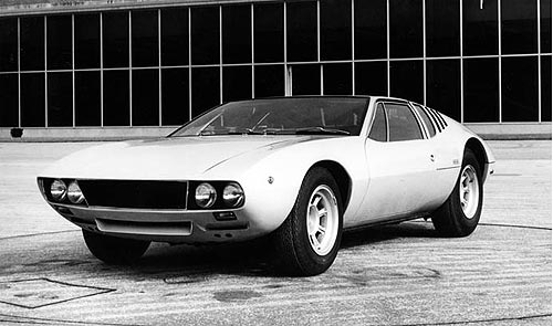![]() (Note: Picture enlarged despite low resolution) ![]() Picture G. Labe: The "Shelby Mangusta" reappeared after its restoration at a car show in Leipzig/Germany. Same car? Most probably. The Shelby stickers are club stickers used after 1975. ![]() This picture sourced from Dave Alzeyer through the De Tomaso registry shows the Shelby MKIV emblem in the front grille. It is known that Ford/Shelby were looking into a Cobra successor, yet Shelby pulled out, when he got the GT40 job. De Tomaso renamed the car to Mangusta (Moongoose = Mangusta eat Cobras) If this was the real design prototype, it is the only one with an emblem. The project was not followed up. ![]() This Ford factory photo shows the same car without the emblem. We have to assume that the above picture was taken the same day with a Shelby emblem and one without. It is exactly the same camera position. What disturbs a bit is that there are no signboards as usual in Ford Design center pictures. |