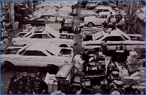 (most probably at Lincoln Cars Garage) | Well, that was another car. The Falcon came to life for the simple reason that they wanted a Ford to run in the Monte Carlo rally. Then they made the Falcon a fibreglass one and you have to have 200 of them for homologation purposes. But they only ever made 50. When the French came across, those 50 were all in a hangar and they inspected them, then they went for morning tea - they all sat down and had morning tea, which was enough time to get the cars over into hangar number two, and they looked at the next 50, and then it was lunchtime, that’s the true history of the Falcon homologation. Those were the days. At that time we finished with those cars - the regulations were not that strict, it was rather politics taking over sometimes, before its under control. I can remember a similar case with General Motors when I looked at all the homologation stuff here (in Australia). They had to make 100 cars before they could run one at Bathurst. I think they made only 5 and won Bathurst, and nobody could get a look in, it was a bit like the Monaro that just run in the 24 hour at Bathurst, straight out race car amongst production cars. That sort of thing had been going on, but the Falcon was more up to the road, because we knew what the regulations were then, we knew what we wanted, so the Falcon was more the race car as such, because it had a better power to weight ratio. I mean putting fibreglass panels on a motor car when you could just make a mould and make much lighter panels and get your weight down so the centre of gravity was better. You can’t do that on a tin car. As for the windscreen - we were able to get some reasonably light weight glass in and then of course we were able to do quite a lot more with the filling of the roll cage. Surf boards were just coming into vogue so we knew a few things about fillings and stuff like that. You could ignite a pretty good brew and that solidified the whole thing inside the roll cage. Where you’ve got typically 3 tons of steel to make the car strong, we had it done with half the weight, and so as with all these cars it was indicated it was. Because of the loose regulations to the homologations to the Monte Carlo we were able to cash in on that. Which wasn’t fair to the Mustang or the Camaros, or whatever have you to compare them to that car, because you could’ve shuffled the Mustang around to do that job had you have the freedom to do it, but the freedoms weren’t there, so that’s the best you could do, at that point in time. | |