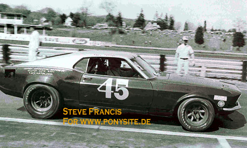 The History of Paul Pettey's and Roy Hallquist's 69 Mustang T/A ![]() Driver Paul Petty racing the car at Lime Rock 1972 (Picture Steve Francis) A report from Steve Francis "When I inspected the car it had a running Boss 302 engine, period correct 4-wheel disc brakes, over rider type bars, magnesium ARE Torque Thrust D wheels (looked like 15"x 9" or 9.5"), fuel filler in both quarter panels (for Daytona and Sebring endurance race events), the Bud Moore Cougar roll cage and fabricated Monte Carlo bar, green line SW gauges, twin R-model type racing seats and the brass tag (#72AS15) riveted on the passenger side main hoop.. A scruffy dusty race car but all there. It was clear that the cage had been in another car prior and had been re-installed in this Mustang. This was owned and raced by a Connecticut resident Paul Pettey (different spelling and no relation to Richard). His fellow CT friend Roy Hallquist helped with the driving duties at circuits such as the Sebring 12 hours in 1970 where they finished 27th in the number 18 Mustang. At the end of the 1967 Trans Am season Paul Pettey purchased one of the Bud Moore Cougars with plans to race it in the 1968 NASCAR Grand National series. Unfortunately the car was wrecked at Sebring early in the year 1968. Misc. parts such as the roll cage, drivers seat and gauges were removed from the Cougar and installed in a new 1969 Mustang fastback (not a boss 302) and as I recall it was an H-code car originally. The car was maroon and later painted white. Currently the car has been restored with a new roll cage fabricated and installed. The old Cougar roll cage from the Paul Pettey 1969 Mustang was purchased by Dave Tom. Steve Francis A former neighbour - Jim F. - contacted us in 2017 and